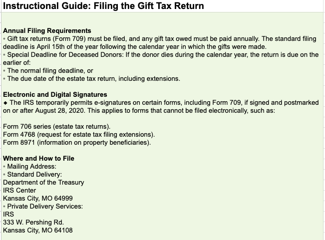 - Split Gift Treatment: Maximize tax benefits with clear instructions for married couples electing to split gifts.