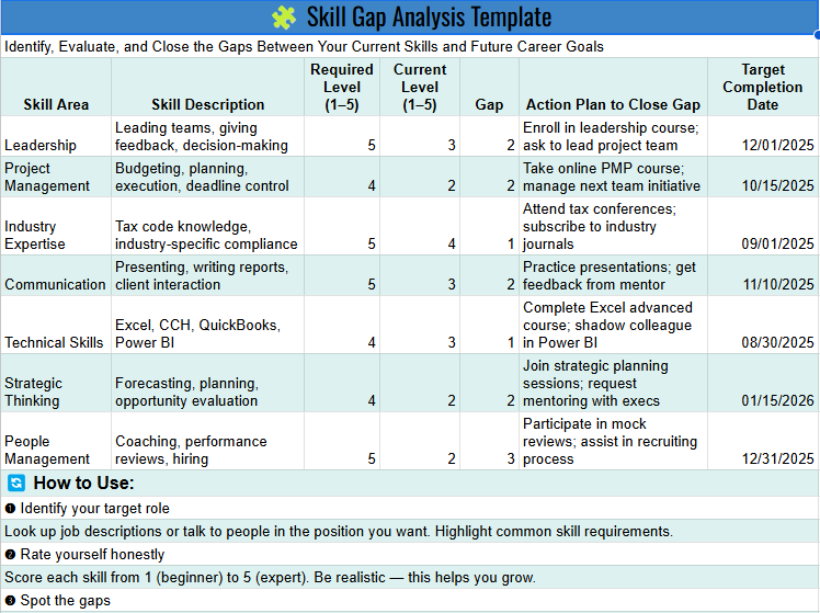 Built-in skill gap analysis template
