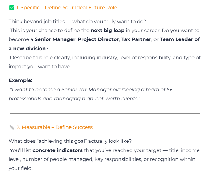 SMART goal prompts for clarity and action